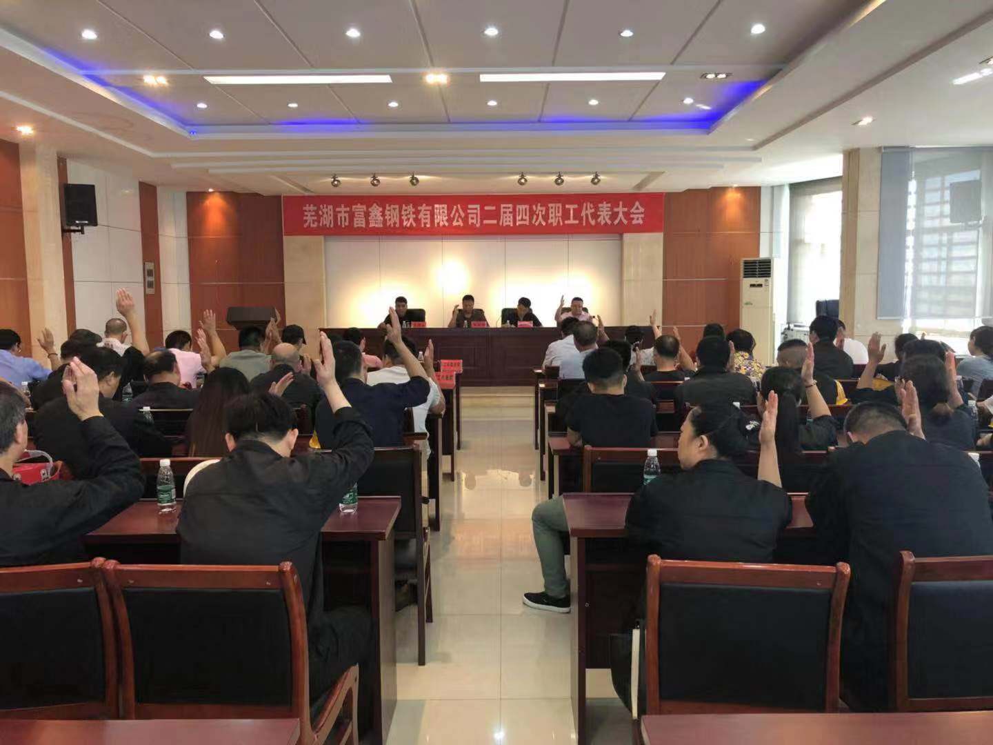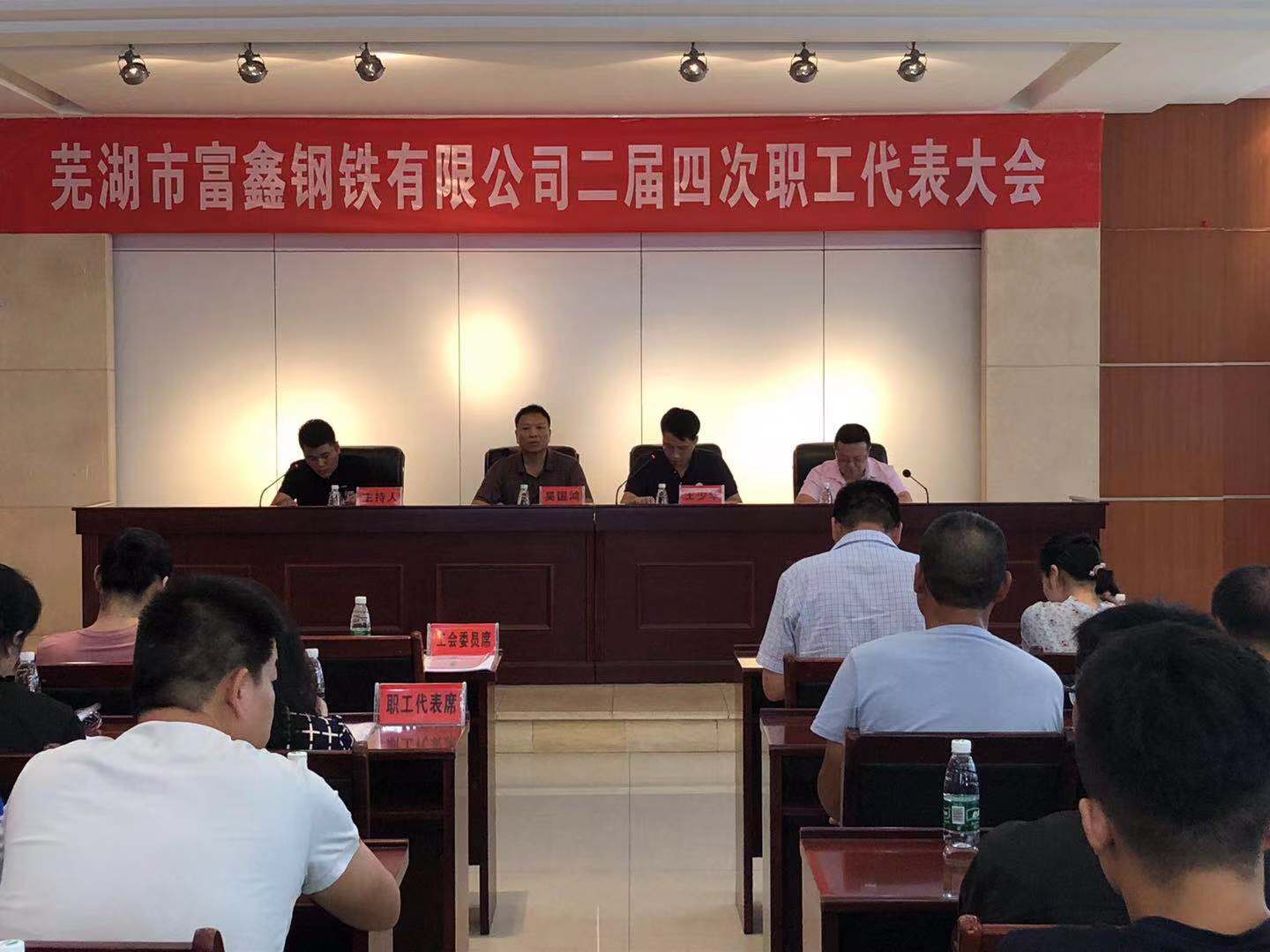 2019年8月6日上午9时永利402官网第二届第四次职工代表大会在雄壮的国歌声中隆重开幕!受公司党委书记王文奇同志委托,陈玉同志代表公司党委对大会致辞!会上全体工会委员、职工代表精神饱满,积极审议。并认真举手表决,全票审议通过了公司2019版《员工手册修订草案》和工会主席王少华同志作的题为《有效提升工会服务意识 共谱和谐发展新篇章》工会工作报告。最后由公司领导吴国鸿同志致大会闭幕辞!此次大会回顾了2018年公司各部门全年的工作,并且号召全体员工在公司党委的坚强领导下,统一思想,坚定信心,攻坚克难,开拓创新,全力以赴,为全面实现2019年公司生产发展目标而努力奋斗!