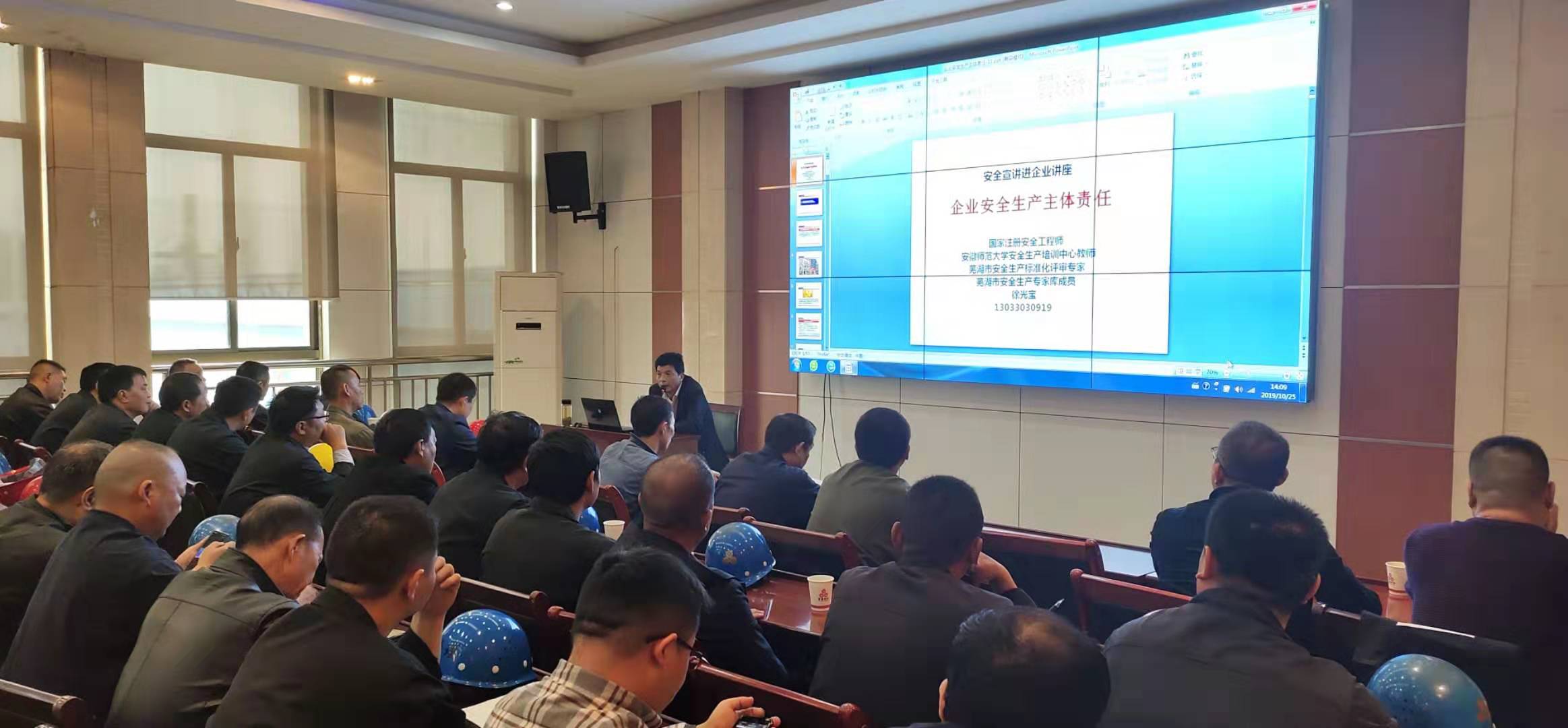 2019年10月25下午,永利402官网组织全体管理以上人员开展安全生产大培训。会上要求全员统一思想,认真学习。牢固树立安全意识。培训过程中,芜湖市安全协会徐光保老师强调:安全生产培训必须从基层管理到中层以上干部,让全员明白,安全生产是安全与生产的统一,切实做到安全促生产,安全稳生产,安全保生产。会上通过典型案例和事故案例教育,牢固树立全体参训人员坚定安全生产的信念。